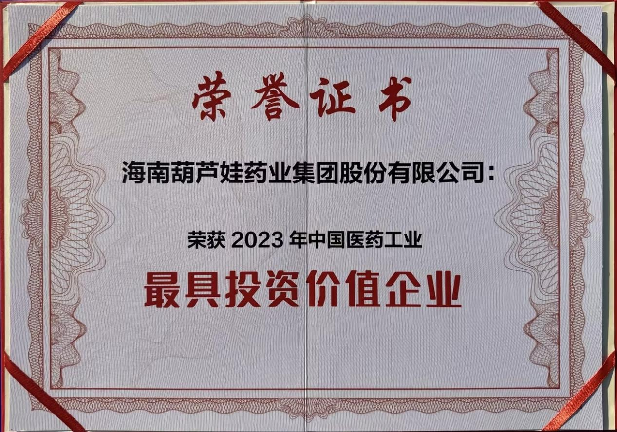 和记官网药业集团荣登“中国医药工业最具投资价值企业”榜单